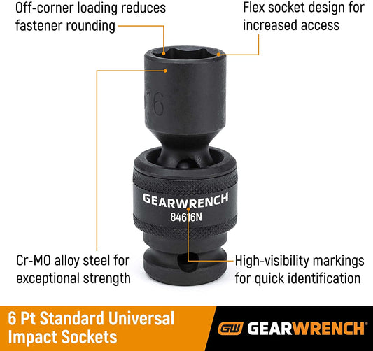 13 Pc. 1/2" Drive 6 Pt. Standard Universal Impact Socket Set, SAE - 84938N