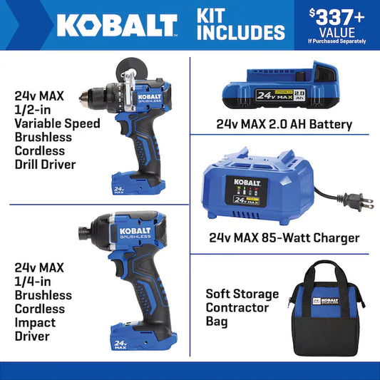 24-Volt 2-Tool Brushless Power Tool Combo Kit with Soft Case (1-Battery Included and Charger Included)